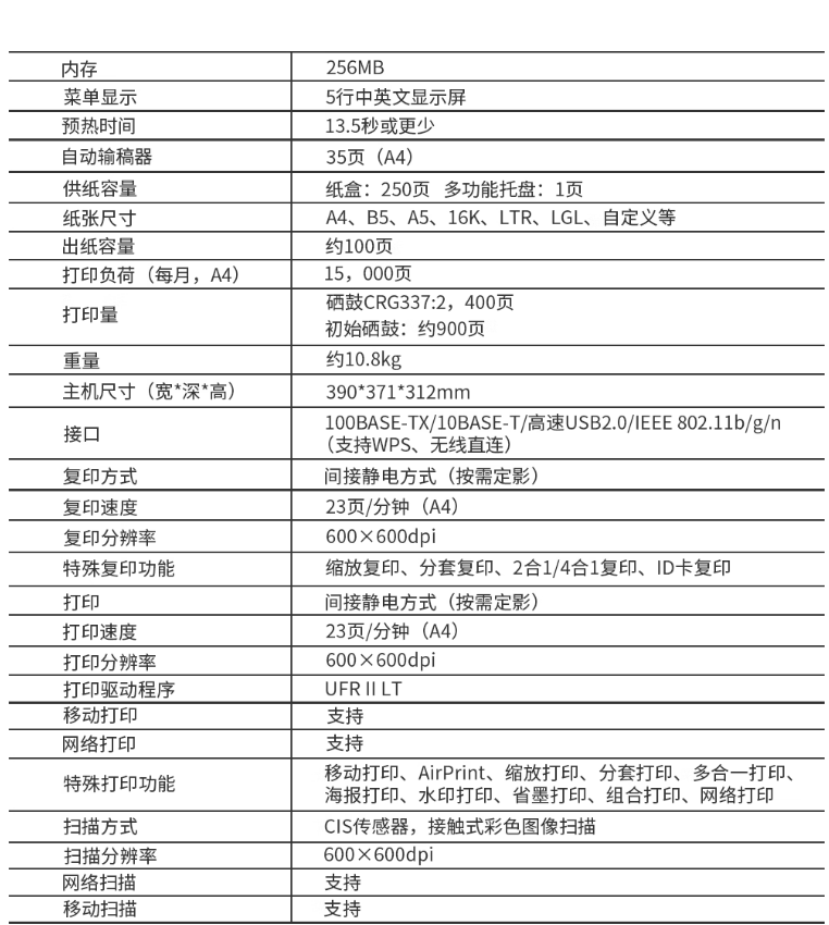 打印類型  :   黑白激光