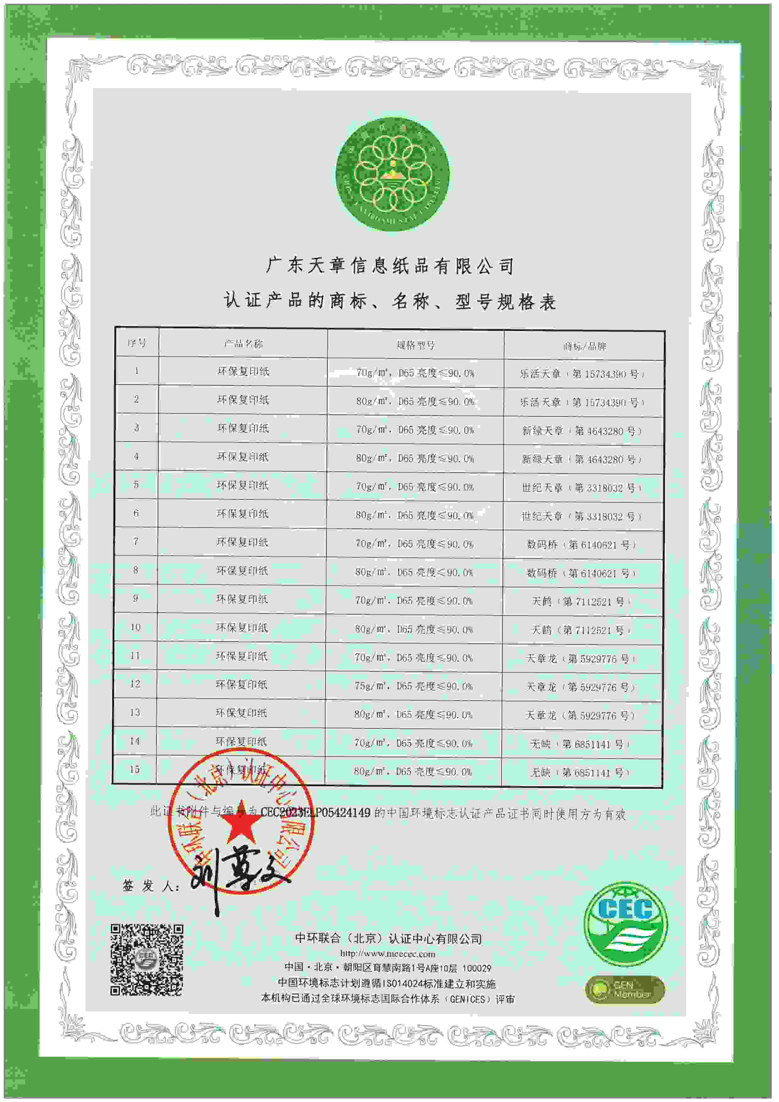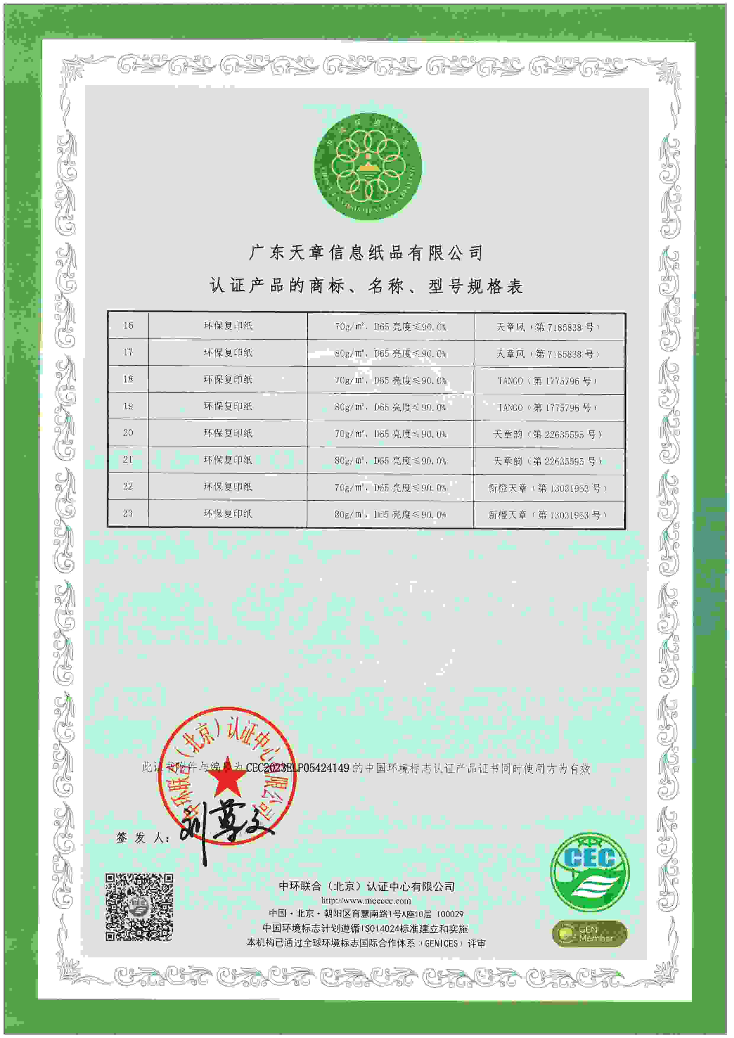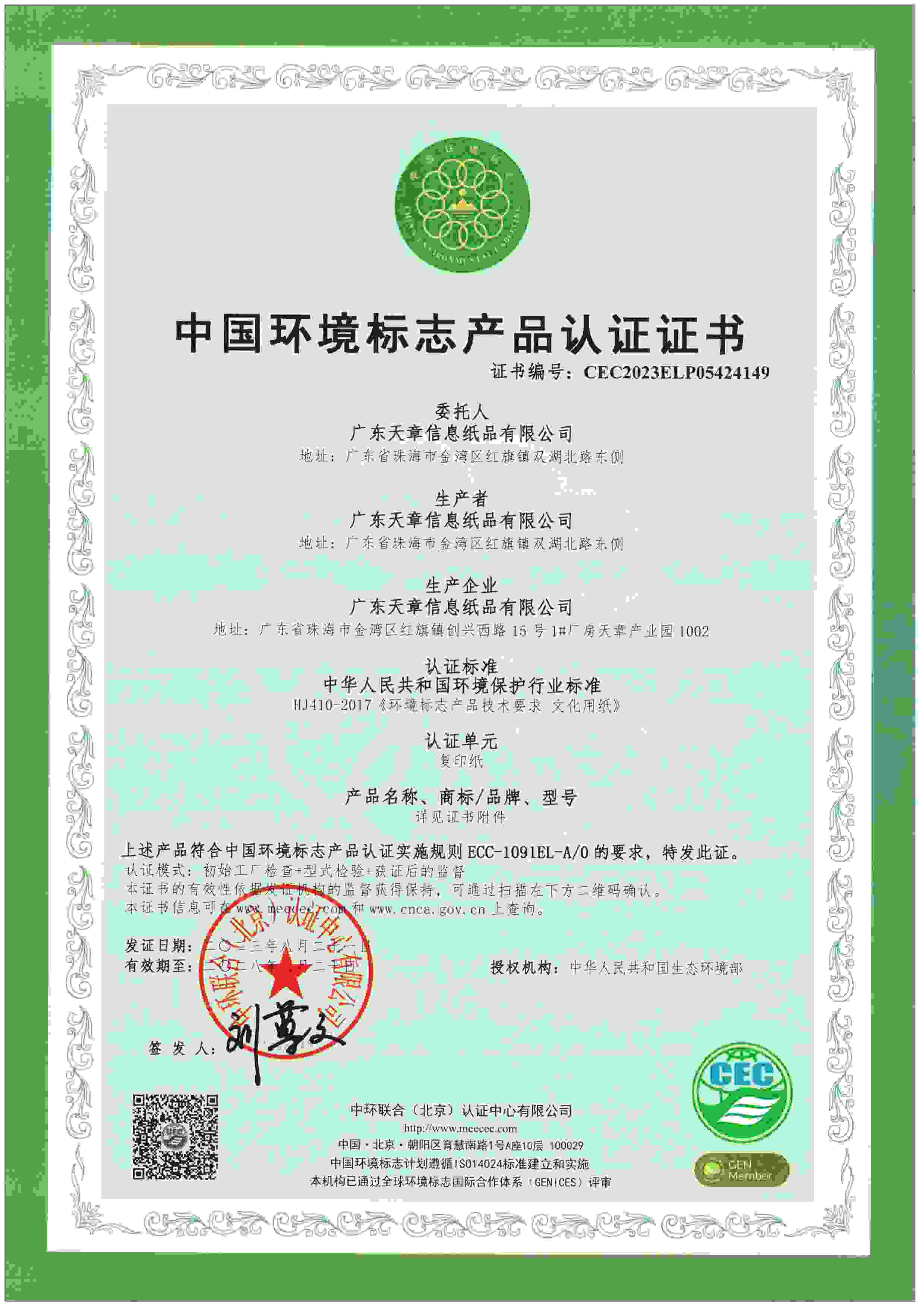 中國環(huán)境標(biāo)志產(chǎn)品認(rèn)證證書編號  :   CEC2023ELP05424149