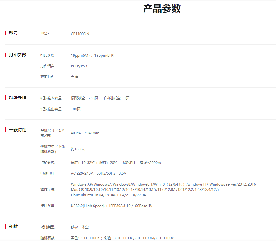 耗材型號  :   黑色:CTL-1100K ;彩色:CTL-1100C/CTL-1100M/CTL-1100Y