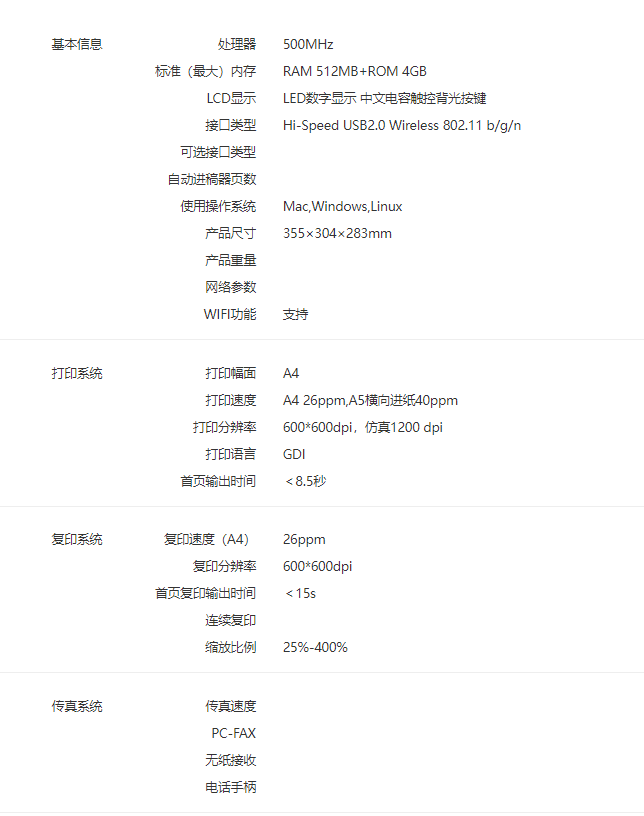 雙面功能  :   無(wú)