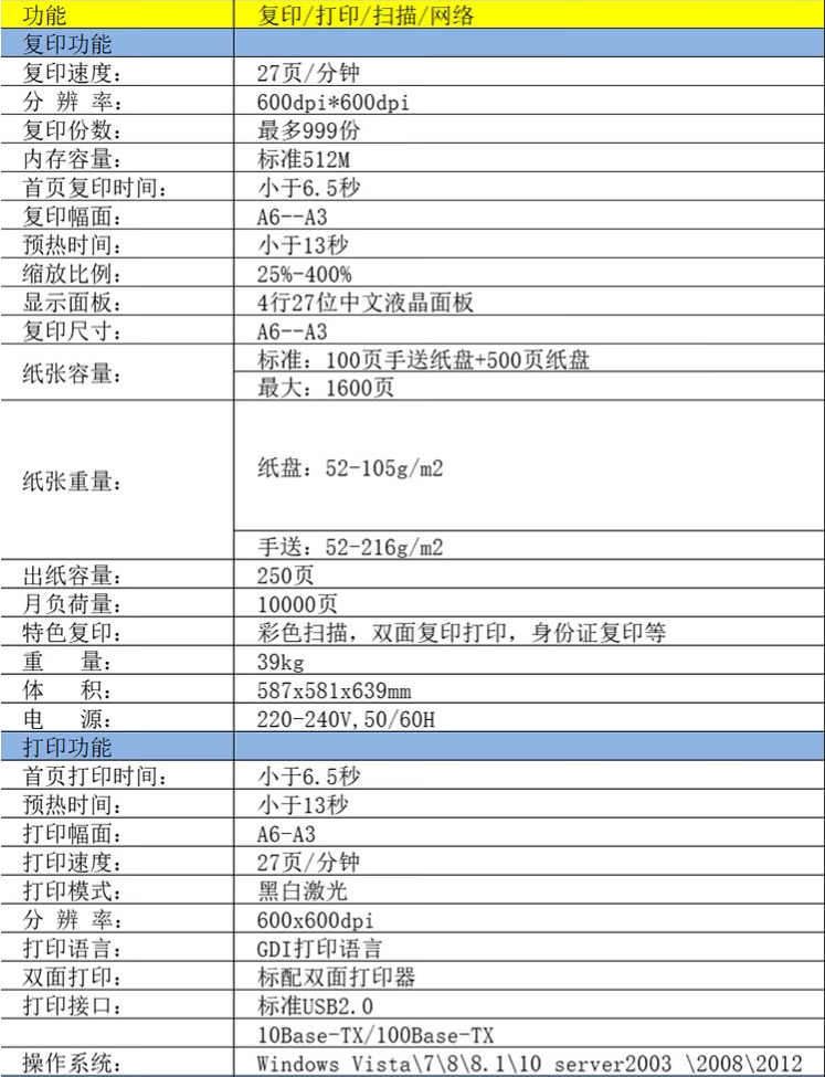 紙盒容量  :   100頁手送紙盤+500頁紙盤