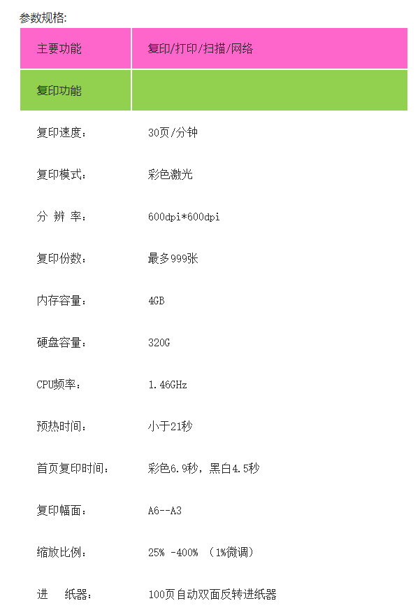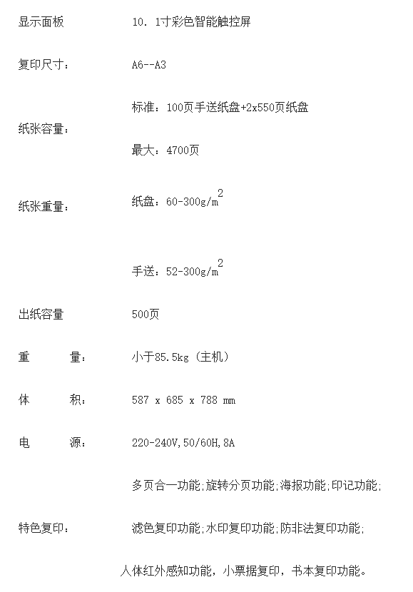 紙盒容量  :   標(biāo)準(zhǔn):100頁手送紙盤+2x550頁紙盤最大:4700頁