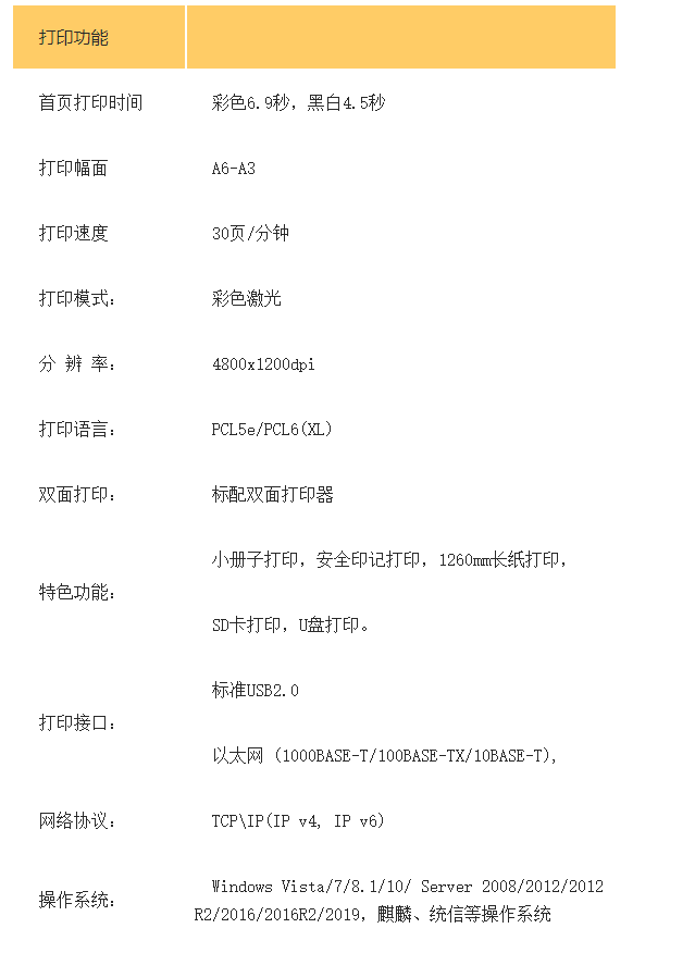 黑白打印速度(頁/分鐘 ppm)  :   30